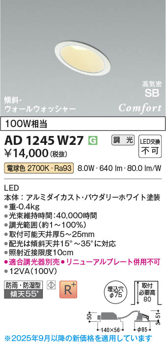 Koizumi コイズミ照明 LED高気密SBダウンライト AD1245W27