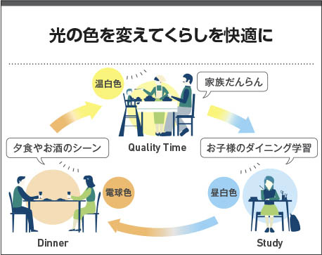 ●調光範囲・調色範囲・光色切替 Fit調色別売専用調光器:調光範囲(約3〜100%)・調色範囲(2700K〜5000K) 別売適合調光器:調光範囲(約1〜100%)・光色切替(2700K→3500K→5000K) 壁スイッチ:光色切替(2700K→3500K→5000K)