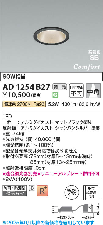 Koizumi コイズミ照明 LED高気密SBダウンライト AD1254B27