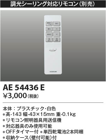Koizumi コイズミ照明 リモコン送信器 AE54436E | 商品情報 | LED照明器具・照明機器の激安通信販売・格安通販・業務用販売・見積もり販売 照明倉庫 -LIGHTING DEPOT-
