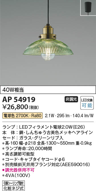 Koizumi コイズミ照明 LEDペンダント AP54919