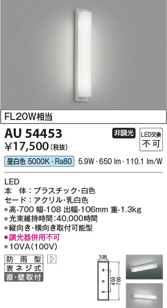 Koizumi コイズミ照明 LED防雨型ブラケット AU54453