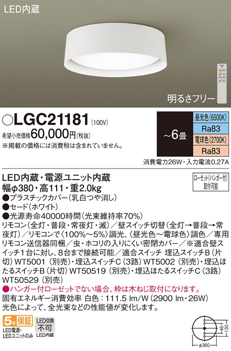 ●本体材質・仕上・色:プラスチックカバー(乳白つや消し)・セード(ホワイト)