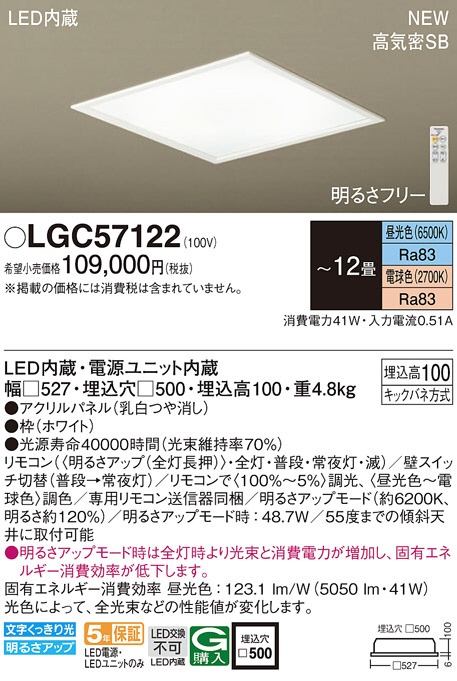 Panasonic シーリングライト LGC57122