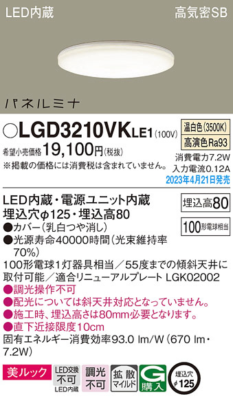 Panasonic ダウンライト LGD3210VKLE1