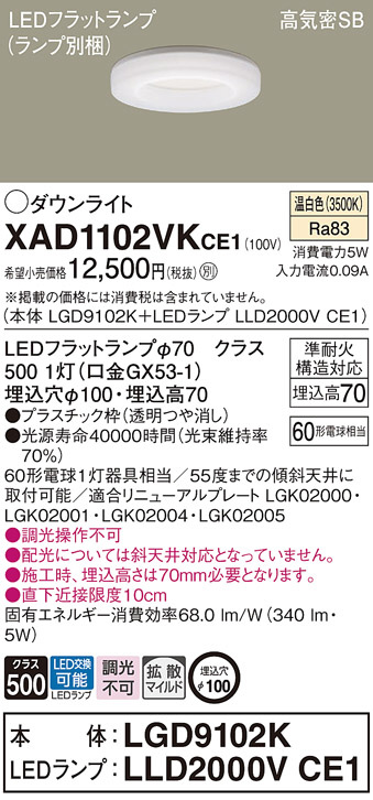 Panasonic ダウンライト XAD1102VKCE1