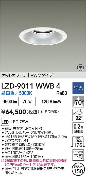 DAIKO 大光電機 LED ダウンライト LZD-9011WWB4