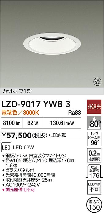 DAIKO 大光電機 LED ダウンライト LZD-9017YWB3