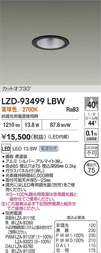 DAIKO 大光電機 LED ダウンライト LZD-93499LBW | 商品情報 | LED照明器具・照明機器の激安通信販売・格安通販・業務用販売・見積もり販売 照明倉庫 -LIGHTING DEPOT-