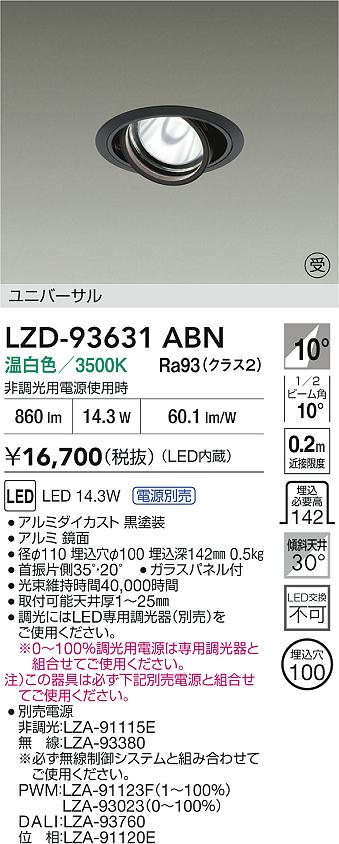 DAIKO 大光電機 LED ユニバーサルダウンライト LZD-93631ABN