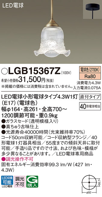 ■本体材質・仕上・色:ガラスセード(透明模様入り)・真ちゅう古味仕上