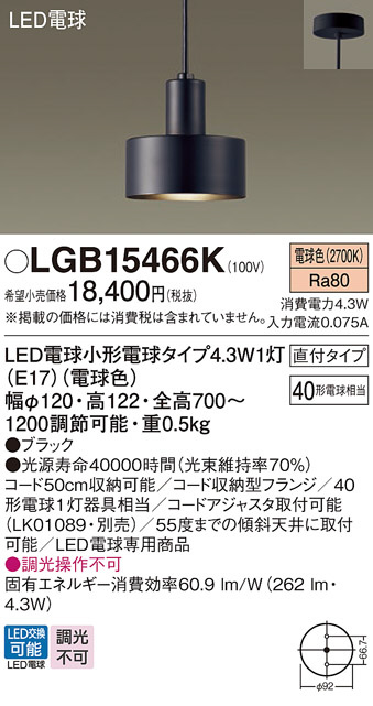 Panasonic ペンダントライト LGB15466K