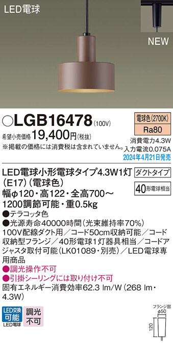 Panasonic ペンダントライト LGB16478