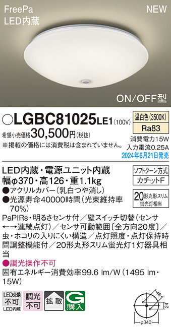 Panasonic シーリングライト LGBC81025LE1