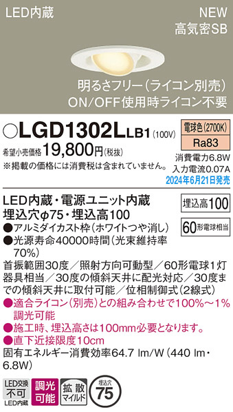 Panasonic ダウンライト LGD1302LLB1