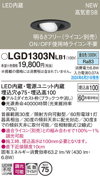 Panasonic ダウンライト LGD1303NLB1