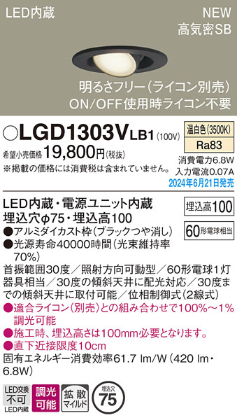 Panasonic ダウンライト LGD1303VLB1