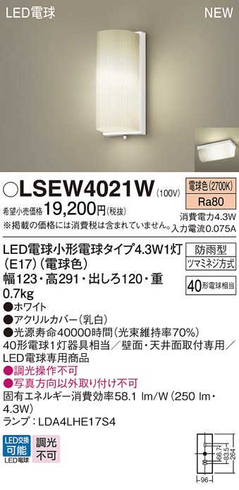 Panasonic エクステリア・アウトドア LSEW4021W