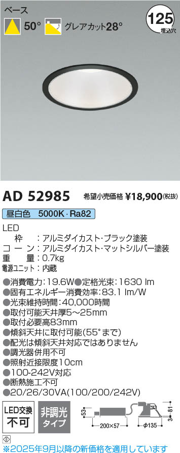 Koizumi コイズミ照明 LEDダウンライト AD52985 | 商品情報 | LED照明器具・照明機器の激安通信販売・格安通販・業務用販売・見積もり販売 照明倉庫 -LIGHTING DEPOT-