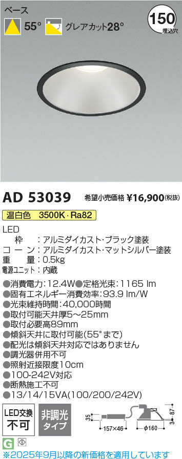 Koizumi コイズミ照明 LEDダウンライト AD53039 | 商品情報 | LED照明器具・照明機器の激安通信販売・格安通販・業務用販売・見積もり販売 照明倉庫 -LIGHTING DEPOT-