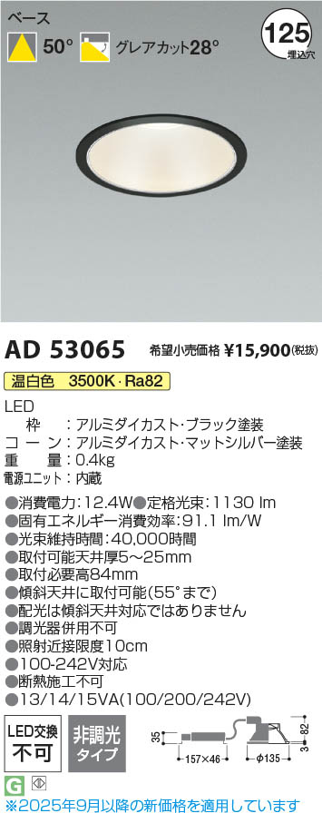 Koizumi コイズミ照明 LEDダウンライト AD53065 | 商品情報 | LED照明器具・照明機器の激安通信販売・格安通販・業務用販売・見積もり販売 照明倉庫 -LIGHTING DEPOT-