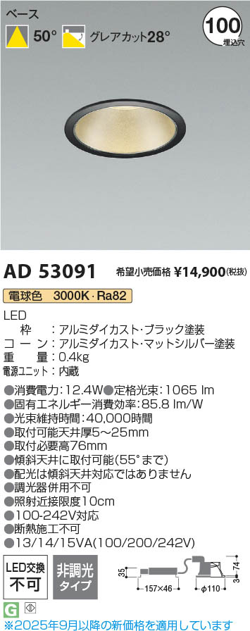 Koizumi コイズミ照明 LEDダウンライト AD53091 | 商品情報 | LED照明器具・照明機器の激安通信販売・格安通販・業務用販売・見積もり販売 照明倉庫 -LIGHTING DEPOT-