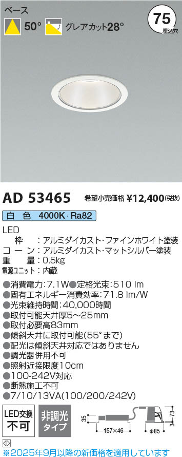 Koizumi コイズミ照明 LEDダウンライト AD53465 | 商品情報 | LED照明器具・照明機器の激安通信販売・格安通販・業務用販売・見積もり販売 照明倉庫 -LIGHTING DEPOT-