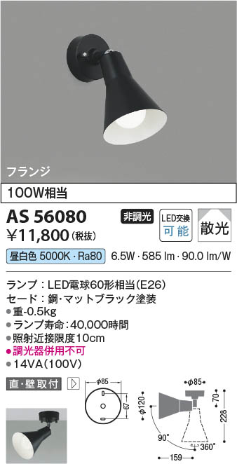 Koizumi コイズミ照明 LEDスポットライト AS56080