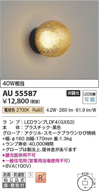Koizumi コイズミ照明 LED防雨防湿型ブラケット AU55587