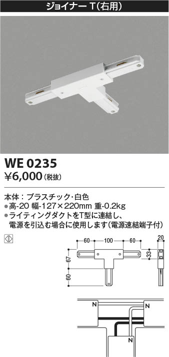 Koizumi コイズミ照明 ジョイナーT(右用) WE0235 | 商品情報 | LED照明器具・照明機器の激安通信販売・格安通販・業務用販売・見積もり販売 照明倉庫 -LIGHTING DEPOT-