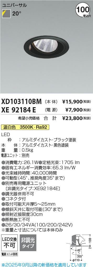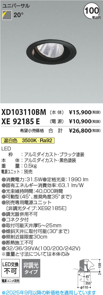 Koizumi コイズミ照明 LEDユニバーサルダウンライト 本体 XD103110BM