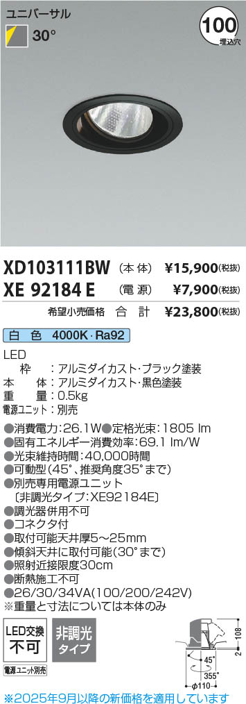 Koizumi コイズミ照明 LEDユニバーサルダウンライト 本体 XD103111BW