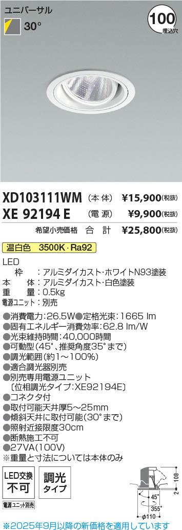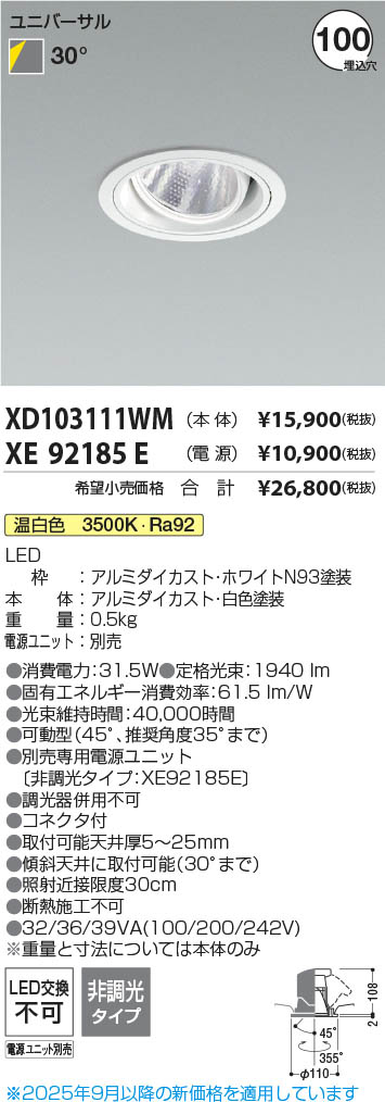 Koizumi コイズミ照明 LEDユニバーサルダウンライト 本体 XD103111WM