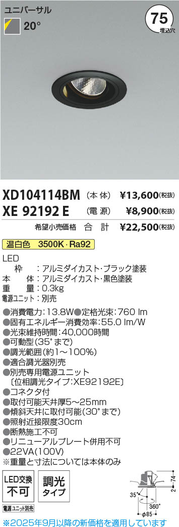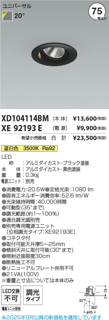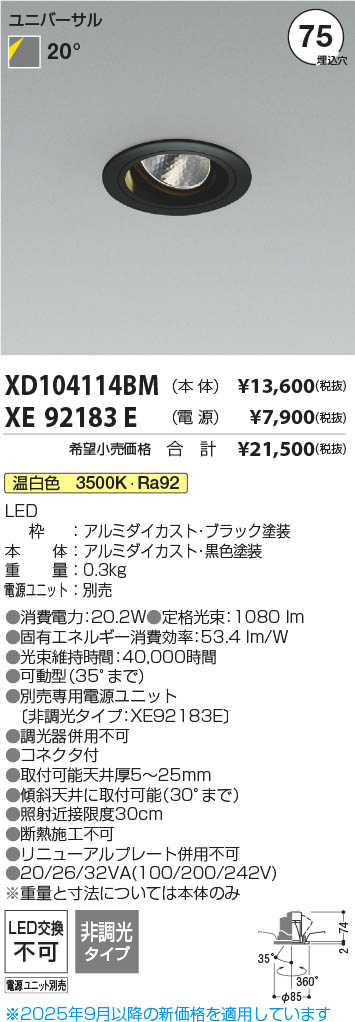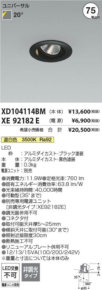 Koizumi コイズミ照明 LEDユニバーサルダウンライト 本体 XD104114BM