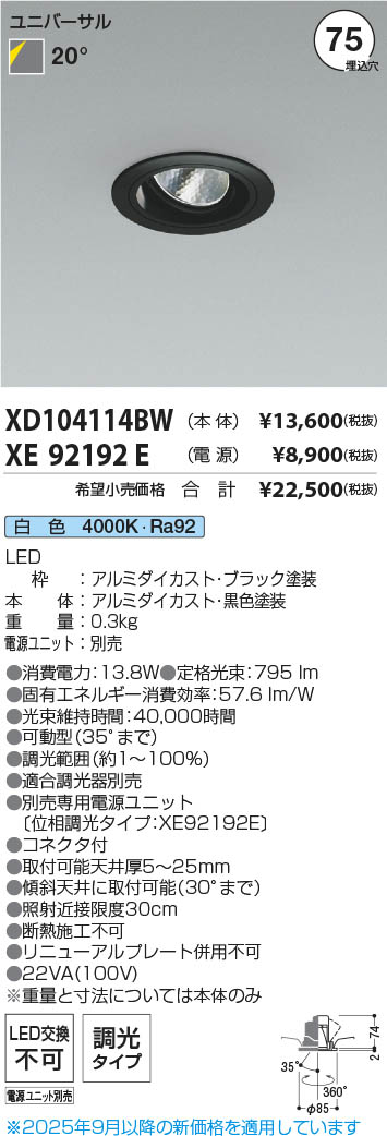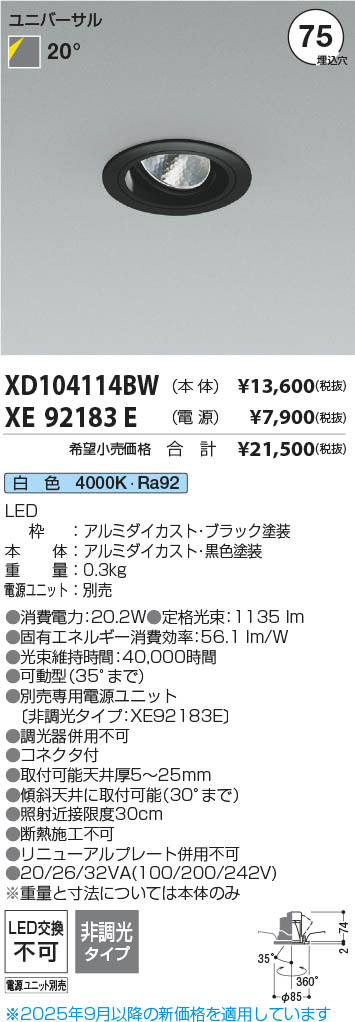 Koizumi コイズミ照明 LEDユニバーサルダウンライト 本体 XD104114BW