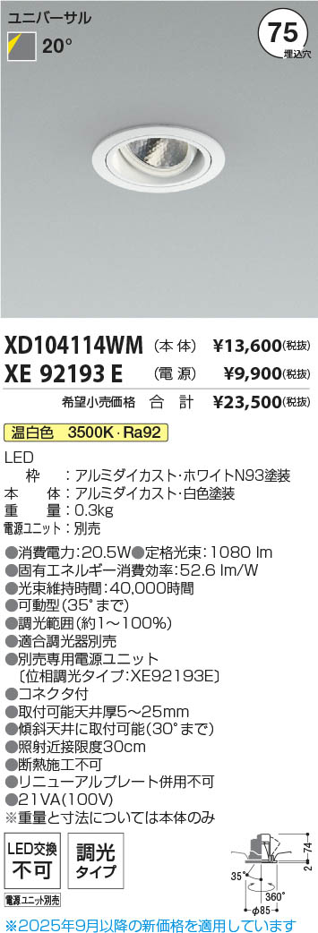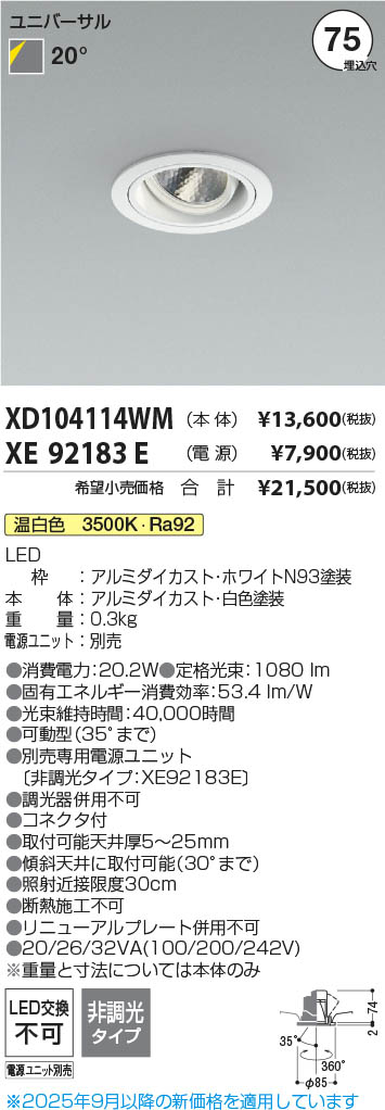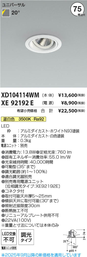 Koizumi コイズミ照明 LEDユニバーサルダウンライト 本体 XD104114WM | 商品情報 | LED照明器具・照明機器の激安通信販売・格安通販・業務用販売・見積もり販売 照明倉庫 -LIGHTING DEPOT-