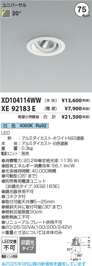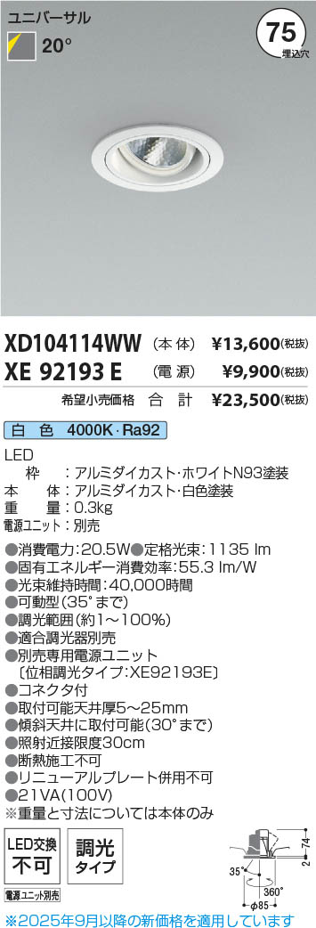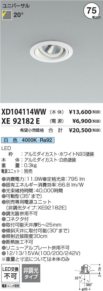 Koizumi コイズミ照明 LEDユニバーサルダウンライト 本体 XD104114WW