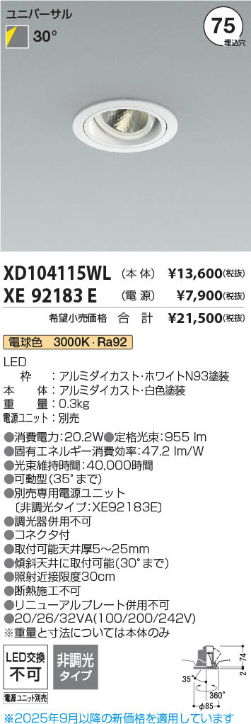 Koizumi コイズミ照明 LEDユニバーサルダウンライト 本体 XD104115WL | 商品情報 | LED照明器具・照明機器の激安通信販売・格安通販・業務用販売・見積もり販売 照明倉庫 -LIGHTING DEPOT-