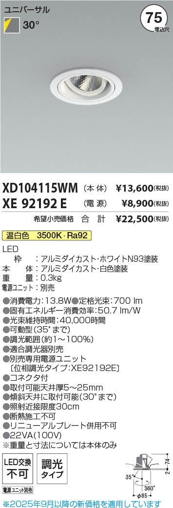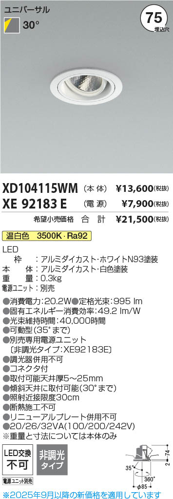 Koizumi コイズミ照明 LEDユニバーサルダウンライト 本体 XD104115WM | 商品情報 | LED照明器具・照明機器の激安通信販売・格安通販・業務用販売・見積もり販売 照明倉庫 -LIGHTING DEPOT-