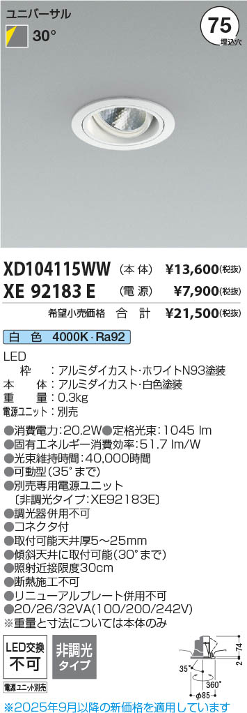 Koizumi コイズミ照明 LEDユニバーサルダウンライト 本体 XD104115WW | 商品情報 | LED照明器具・照明機器の激安通信販売・格安通販・業務用販売・見積もり販売 照明倉庫 -LIGHTING DEPOT-