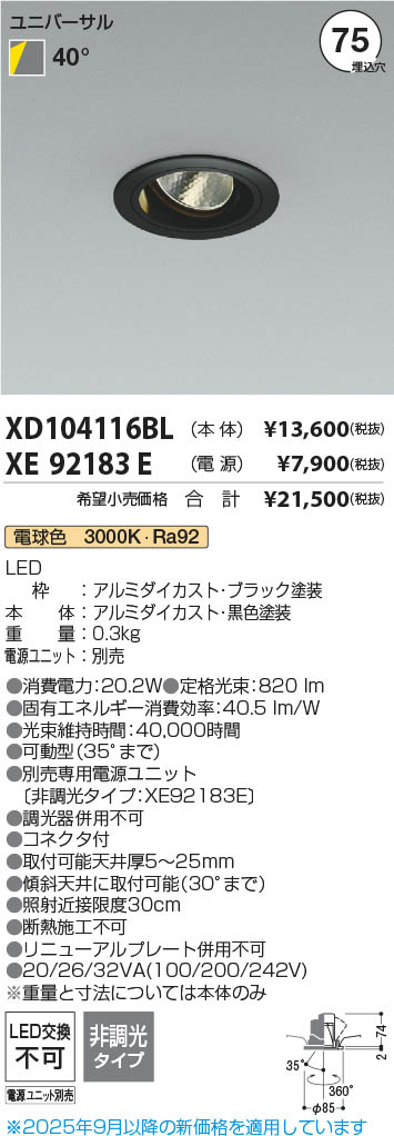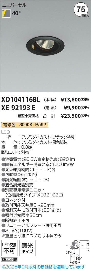 Koizumi コイズミ照明 LEDユニバーサルダウンライト 本体 XD104116BL | 商品情報 | LED照明器具・照明機器の激安通信販売・格安通販・業務用販売・見積もり販売 照明倉庫 -LIGHTING DEPOT-