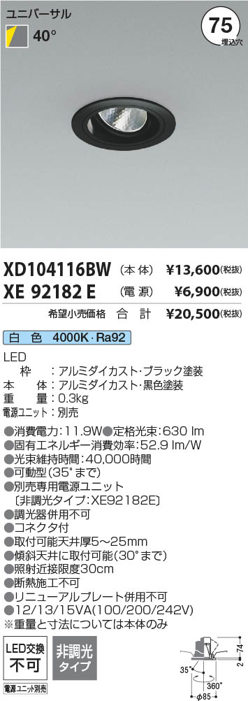 Koizumi コイズミ照明 LEDユニバーサルダウンライト 本体 XD104116BW | 商品情報 | LED照明器具・照明機器の激安通信販売・格安通販・業務用販売・見積もり販売 照明倉庫 -LIGHTING DEPOT-