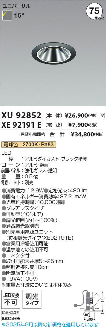 Koizumi コイズミ照明 LED防雨防湿型ユニバーサルダウンライト 本体 XU92852