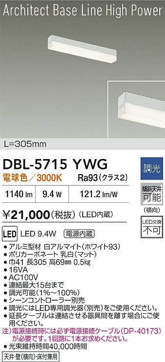DAIKO 大光電機 LED ベースライト DBL-5715YWG