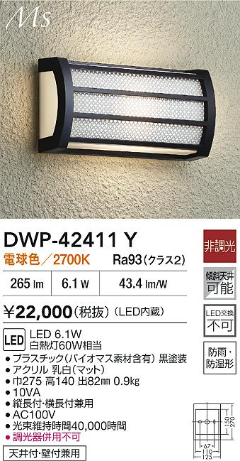 DAIKO 大光電機 LEDアウトドアブラケット DWP-42411Y
