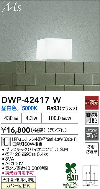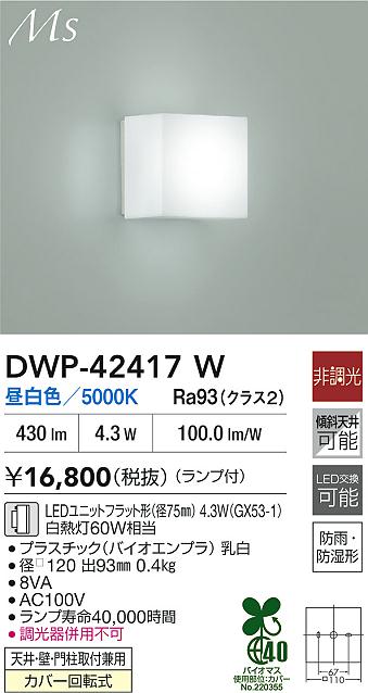 DAIKO 大光電機 LED浴室灯 DWP-42417W