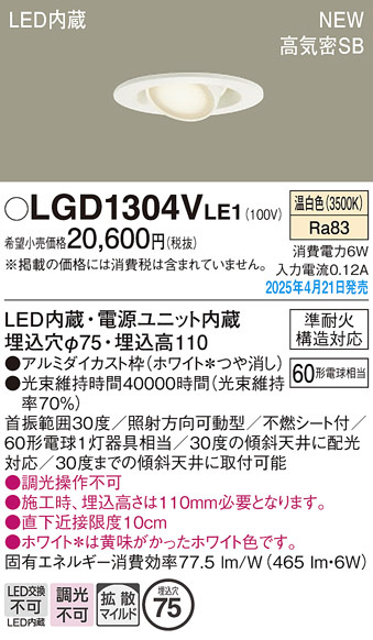 Panasonic ダウンライト LGD1304VLE1