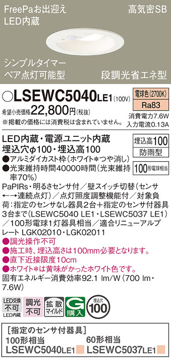 Panasonic エクステリアダウンライト LSEWC5040LE1