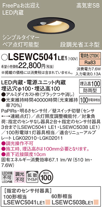 Panasonic エクステリアダウンライト LSEWC5041LE1