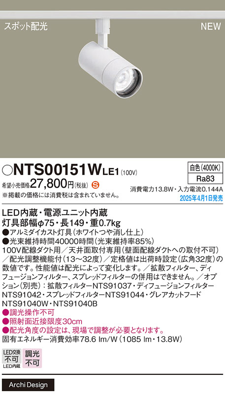 Panasonic スポットライト NTS00151WLE1